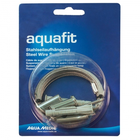 Aquafit es un sistema de suspensión de cable de acero.nnEl sistema de suspensión mediante cable aquafit provee un método limpio y simple de montaje en el techo para pantallas de Aqua Medic y otras aptas.