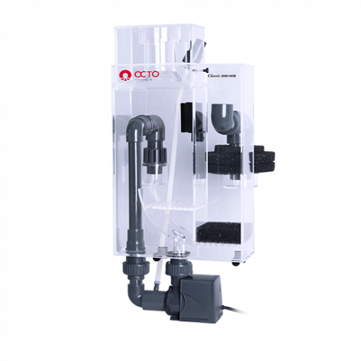 Skimmer Classic 2000-HOB de colgar con bomba AQ-2000S hasta 800 LnEl Classic 2000-HOB es un skimmer externo para colgar con un diseño que lo hace fácil de instalar y de mantener.nViene equipado con una bomba AQ 2000s, ofreciendo un rendimiento muy eficaz con una entrada de aire de 720 L/h.nSe recomienda su uso para acuarios de entre 500 y 800 litros.nCaracterísticas y PrestacionesnEl skimmer de proteínas es la única forma de filtración física que elimina los compuestos orgánicos antes de su descomposición, aligerando así la carga sobre el filtro biológico y mejorando el potencial redox del agua.nEl Classic 100-HOB es un skimmer externo para colgar con un diseño que lo hace fácil de instalar y de mantener.nViene equipado con una bomba AQ 1000s, ofreciendo un rendimiento muy eficaz con una entrada de aire de 420 L/h.nIncorpora una función de retirada de la grasa superficial al ser esta más común en acuarios sin sump.nSkimmer
