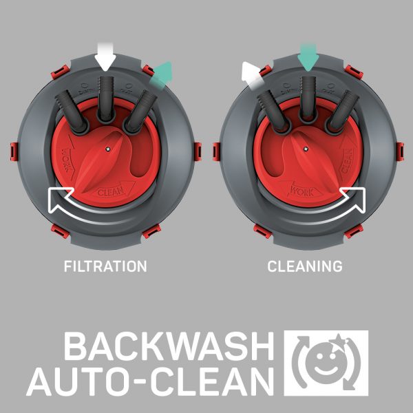 Kit completo de alto rendimiento y listo para instalar con la revolucionaria tecnología de limpieza BACKWASH: Con tan solo girar la palanca de la tapa, el agua fluye a través del dispositivo en sentido contrario limpiando el filtro.