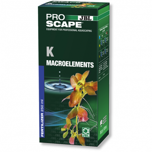 Suministro: 1 bote de ProScape K Macroelements. Usar, p. ej., en acuarios de mucha luz con CO2: 6 ml/100 l a diario; con luz débil sin CO2: 4 ml/100 l cada semana