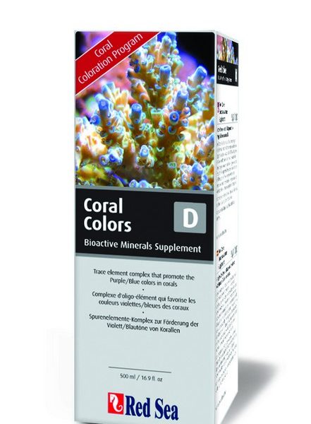 Para conseguir una increible coloración de los corales. Coral Color D es un complejo de 18 oligoelementos. Estos 18 elementos participan en diferentes procesos metabólicos en el esqueleto de coral y los tejidos blandos. Los elementos D están relacionados con las cromoproteínas azules. Nuestra investigación ha identificado una relación constante entre cada uno de los Coral Colors y el consumo total de calcio, que es proporcional al crecimiento del coral y su actividad metabólica. Esto proporciona un método fácil y seguro de dosificación de todos los suplementos Coral Colors en función de la absorción de calcio medida. Así por cada 10 ml de calcio añadido se puede añadir 1 ml de cada Reef Colors.